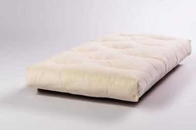 - Futon 5 mattress: 5 cm of organic latex wrapped in organic wool and cotton with a cotton cover.